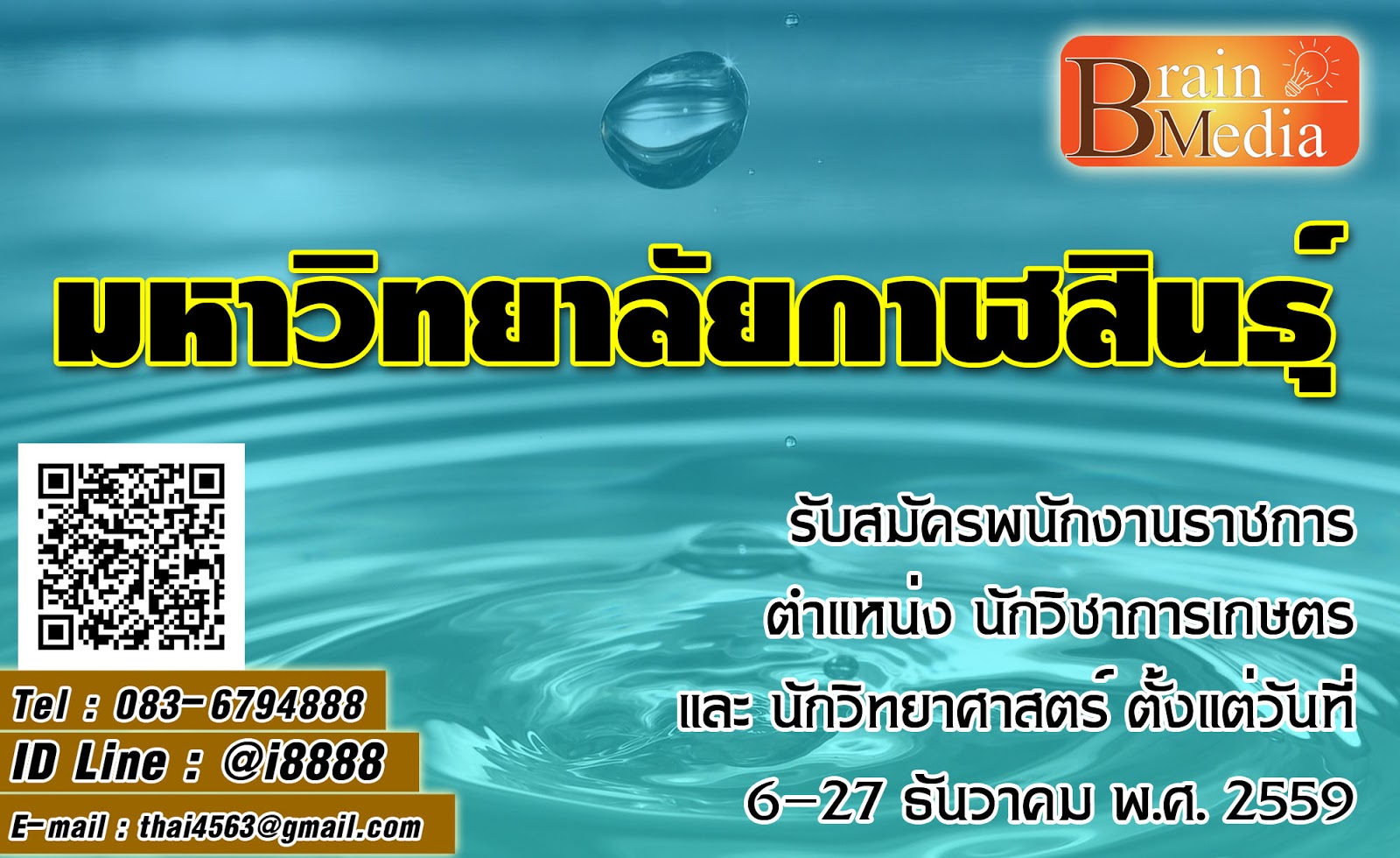 มหาวิทยาลัยกาฬสินธุ์ รับสมัครพนักงานราชการ ตำแหน่ง นักวิชาการเกษตร และ นักวิทยาศาสตร์ ตั้งแต่วันที่ 6-27 ธันวาคม พ.ศ. 2559