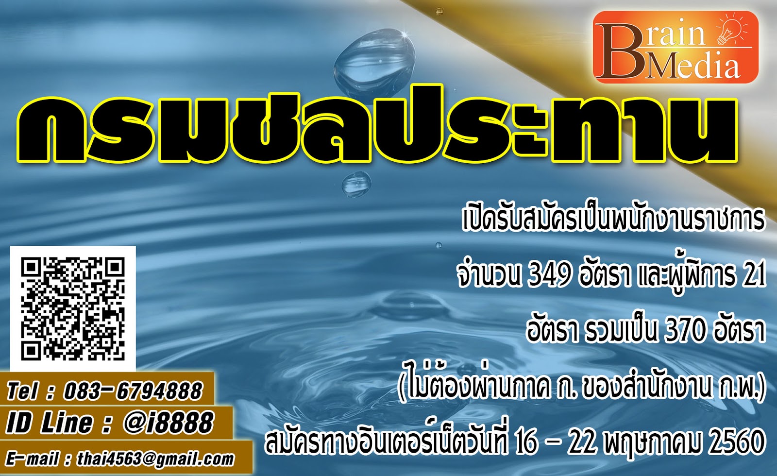 กรมชลประทาน เปิดรับสมัครเป็นพนักงานราชการ จำนวน 349 อัตรา และผู้พิการ 21 อัตรา รวมเป็น 370 อัตรา