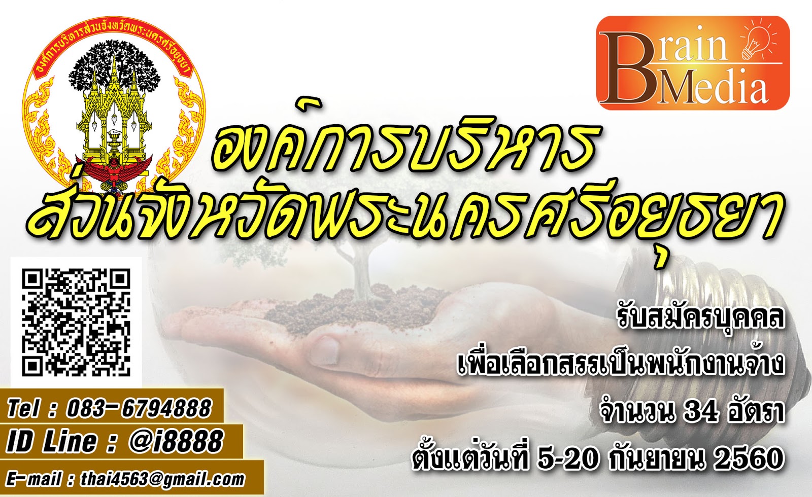 องค์การบริหารส่วนจังหวัดพระนครศรีอยุธยา เปิดสอบ งานราชการ