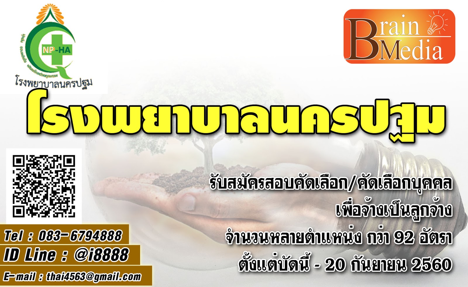 โรงพยาบาลนครปฐม รับสมัครสอบคัดเลือก/คัดเลือกบุคคลเพื่อจ้างเป็นลูกจ้าง จำนวนหลายตำแหน่ง กว่า 92 อัตรา ตั้งแต่บัดนี้ - 20 กันยายน 2560