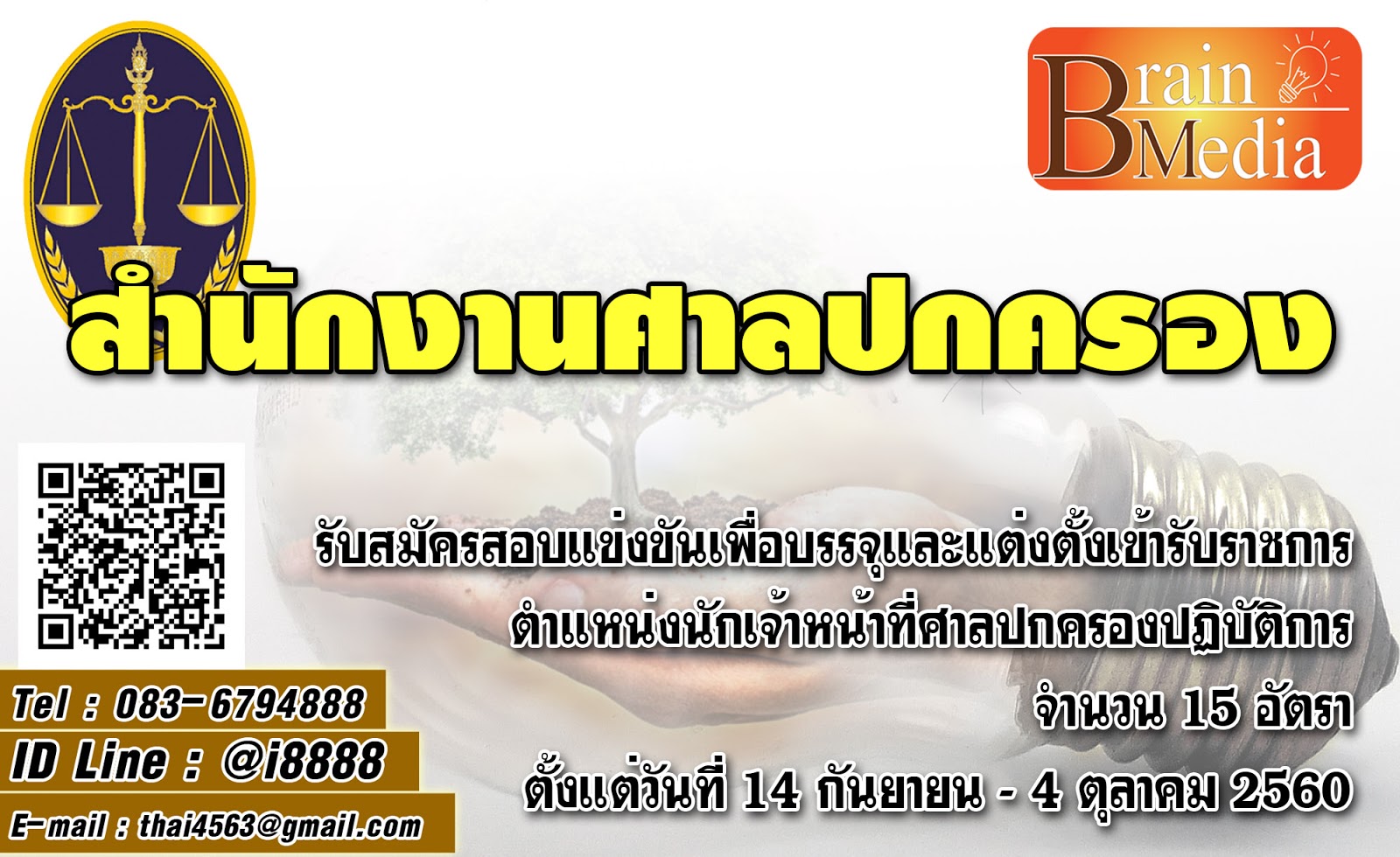สำนักงานศาลปกครอง รับสมัครสอบแข่งขันเพื่อบรรจุและแต่งตั้งเข้ารับราชการ ตำแหน่งนักเจ้าหน้าที่ศาลปกครองปฏิบัติการ จำนวน 15 อัตรา ตั้งแต่วันที่ 14 กันยายน - 4 ตุลาคม 2560