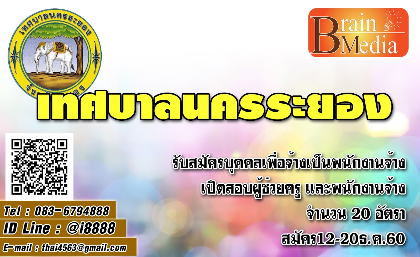 เทศบาลนครระยอง เปิดสอบผู้ช่วยครู และพนักงานจ้าง 20 อัตรา สมัคร12-20ธ.ค.60