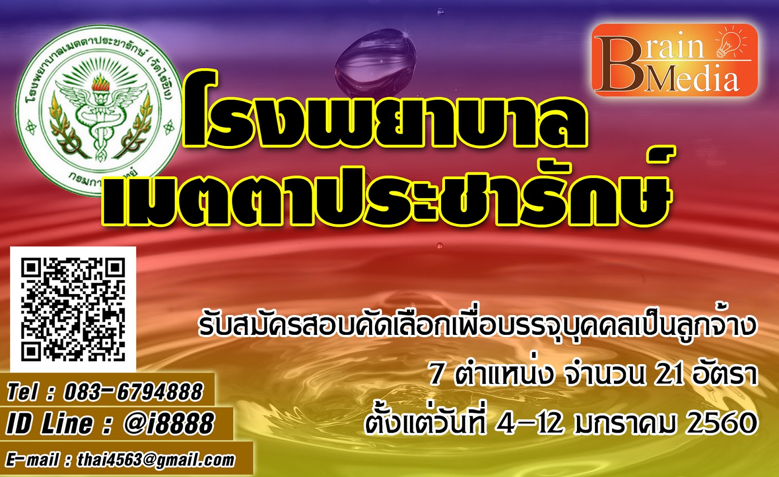 โรงพยาบาลเมตตาประชารักษ์ รับสมัครสอบคัดเลือกเพื่อบรรจุบุคคลเป็นลูกจ้าง 7 ตำแหน่ง จำนวน 21 อัตรา ตั้งแต่วันที่ 4-12 มกราคม 2560