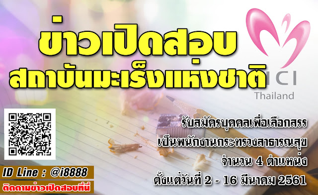 สถาบันมะเร็งแห่งชาติ รับสมัครบุคคลเพื่อเลือกสรรเป็นพนักงานกระทรวงสาธารณสุข จำนวน 4 ตำแหน่ง ตั้งแต่วันที่ 2 - 16 มีนาคม 2561