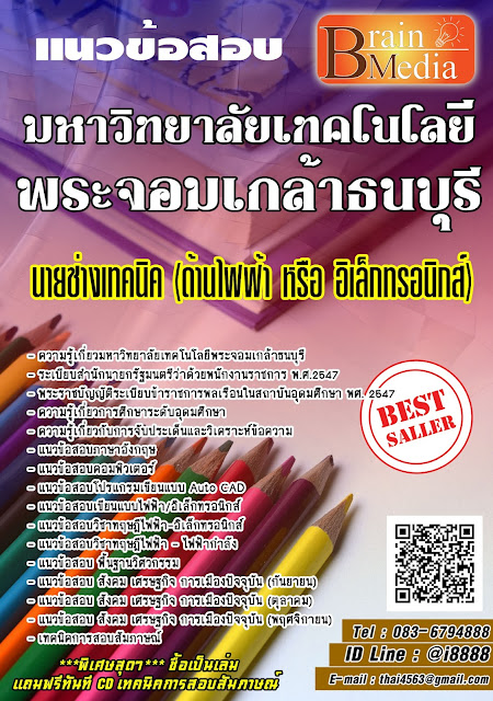 โหลดแนวข้อสอบ นายช่างเทคนิค (ด้านไฟฟ้า หรือ อิเล็กทรอนิกส์) มหาวิทยาลัยเทคโนโลยีพระจอมเกล้าธนบุรี