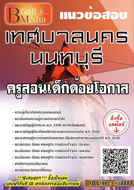 โหลดแนวข้อสอบ ครูสอนเด็กด้อยโอกาส เทศบาลนครนนทบุรี