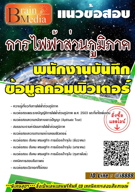 ชื้อแนวข้อสอบ พนักงานบันทึกข้อมูลคอมพิวเตอร์ การไฟฟ้าส่วนภูมิภาค เป็นpdf แถมฟรีทันที file mp3 เทคนิคการสอบสัมภาษณ์