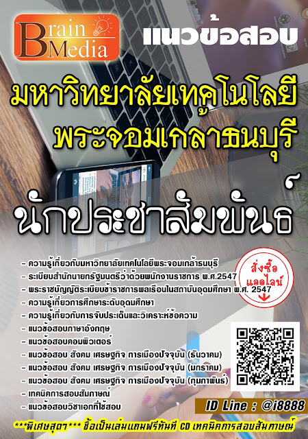 ***พิเศษสุดๆ*** ชื้อแนวข้อสอบ นักประชาสัมพันธ์ มหาวิทยาลัยเทคโนโลยีพระจอมเกล้าธนบุรี เป็นเล่ม แถมฟรีทันที CD เทคนิคการสอบสัมภาษณ์