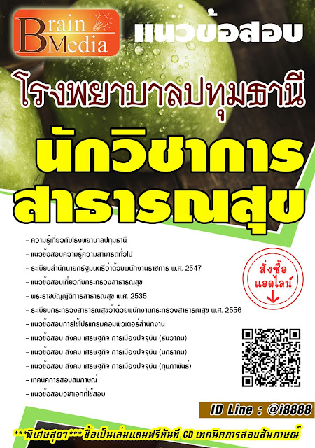 ***พิเศษสุดๆ*** ชื้อแนวข้อสอบ นักวิชาการสาธารณสุข โรงพยาบาลปทุมธานี เป็นเล่ม แถมฟรีทันที CD เทคนิคการสอบสัมภาษณ์