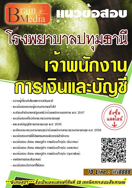***พิเศษสุดๆ*** ชื้อแนวข้อสอบ เจ้าพนักงานการเงินและบัญชี โรงพยาบาลปทุมธานี เป็นเล่ม แถมฟรีทันที CD เทคนิคการสอบสัมภาษณ์
