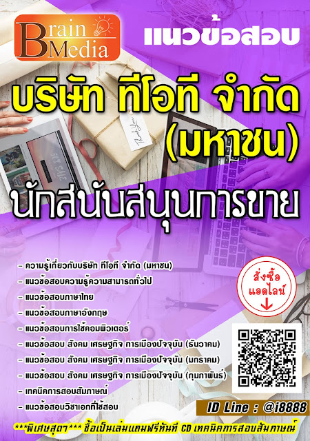 ชื้อแนวข้อสอบ นักสนับสนุนการขาย บริษัท ทีโอที จำกัด (มหาชน) เป็นpdf แถมฟรีทันที file mp3 เทคนิคการสอบสัมภาษณ์