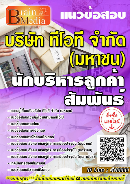 ชื้อแนวข้อสอบ นักบริหารลูกค้าสัมพันธ์ บริษัท ทีโอที จำกัด (มหาชน) เป็นpdf แถมฟรีทันที file mp3 เทคนิคการสอบสัมภาษณ์