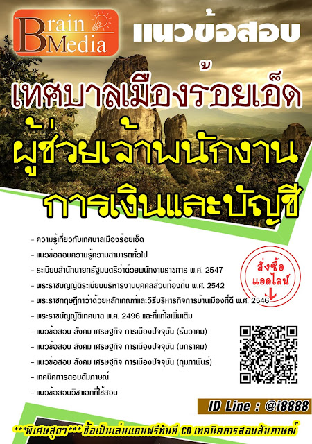 ***พิเศษสุดๆ*** ชื้อแนวข้อสอบ ผู้ช่วยเจ้าพนักงานการเงินและบัญชี เทศบาลเมืองร้อยเอ็ด เป็นเล่ม แถมฟรีทันที CD เทคนิคการสอบสัมภาษณ์