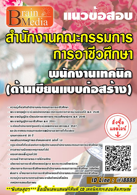 ชื้อแนวข้อสอบ พนักงานเทคนิค (ด้านเขียนแบบก่อสร้าง) สำนักงานคณะกรรมการการอาชีวศึกษา เป็นpdf แถมฟรีทันที file mp3 เทคนิคการสอบสัมภาษณ์
