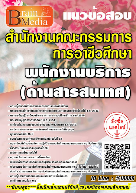 ชื้อแนวข้อสอบ พนักงานบริการ (ด้านสารสนเทศ) สำนักงานคณะกรรมการการอาชีวศึกษา เป็นpdf แถมฟรีทันที file mp3 เทคนิคการสอบสัมภาษณ์