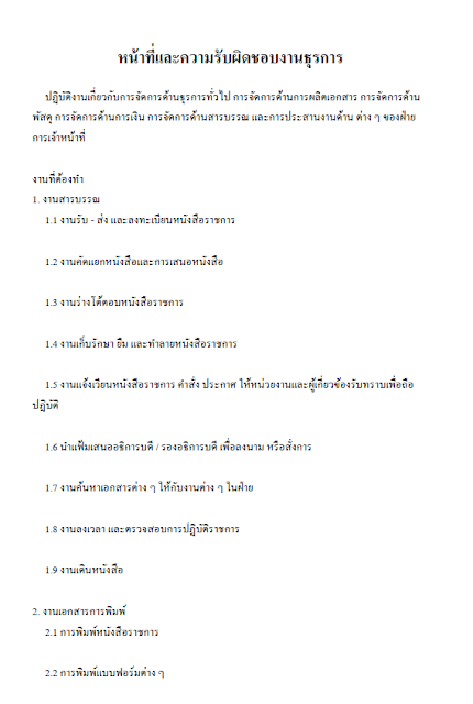 - หน้าที่และความรับผิดชอบงานธุรการ